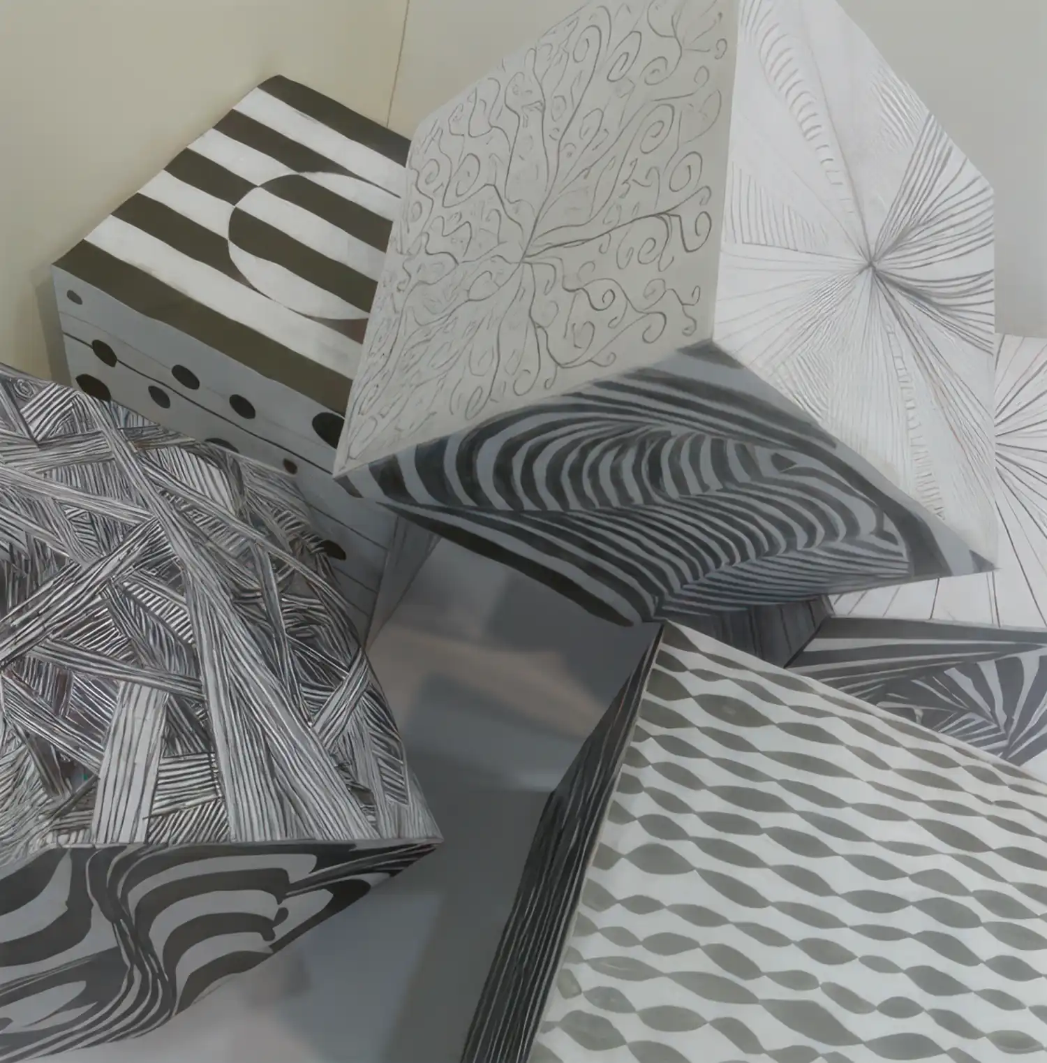 Ein mehrmonatiges Experiment mit der Linie. Die Linie charakterisiert Bewegungsspuren, bestimmt den Umriss von Formen und bietet Möglichkeiten an, flächenbildend über ihre Verdichtung Körperhaftigkeit und Stofflichkeit zu deuten und Oberflächen zu beschreiben. Die Linie nimmt im Punkt ihren Anfang und ist ihrem Wesen nach unendlich.