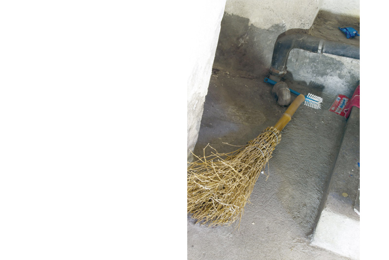 Ich mag meine erneuerungsbedürftige Waschküche. Die Wände bröckeln, sie erzählen alte und neue Geschichten. Der Raum wirkt auf mich wie eine bespielbare Bühne. Verteilt im ganzen Raum liegen viele Gegenstände.